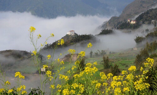 Hai ngày nay trời hết mưa rét, nắng vàng bừng lên nên mây luồn xuất hiện liên tục ở vùng núi cao Sa Pa làm phong cảnh đẹp như cảnh thần tiên trên phim ảnh.