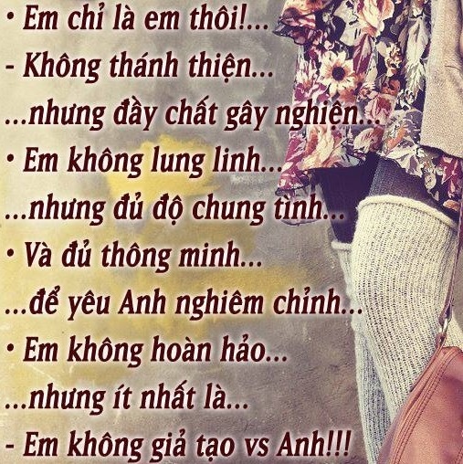 Hãy để em tiếp tục thích anh nhé. Em chỉ yêu cầu thế thôi. Vì em sợ mất đi cơ hội được ở bên anh dù chỉ như một người bạn, nên hãy cứ để em giấu thật kĩ những suy nghĩ này nhé. Chỉ cần thích anh, vậy thôi. Như một phần của những thói quen khó bỏ, như phút rong ruổi của những cảm xúc không tên, và như phút lặng của những ồn ã cuộc đời.