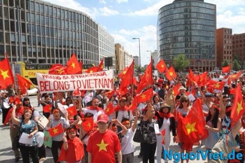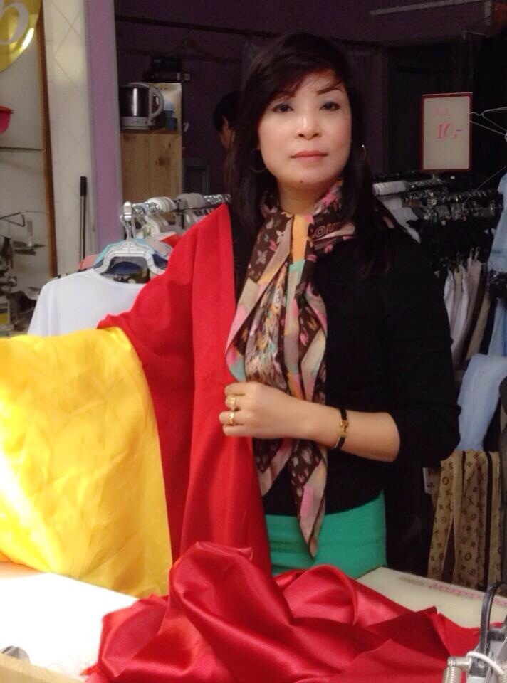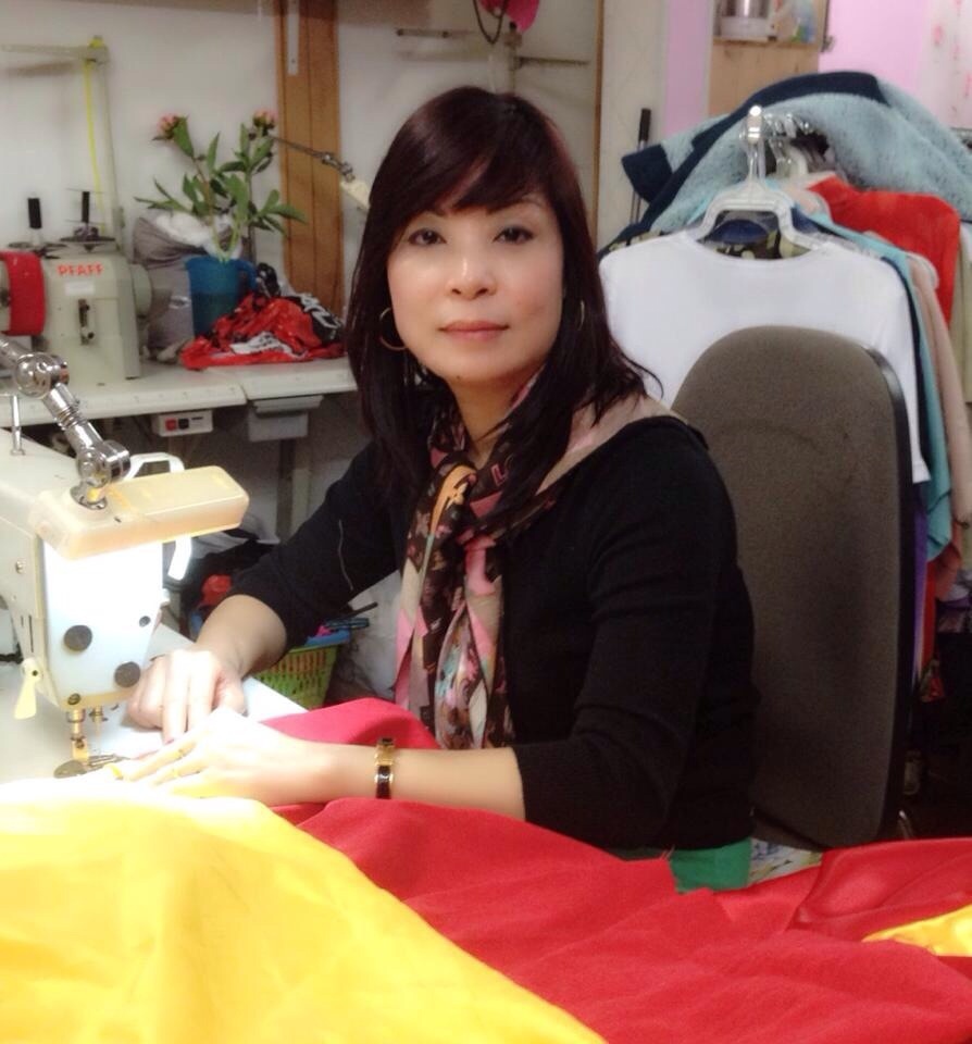 Không khí cho cuộc biểu tình chống Trung Quốc xâm lấn và gây hấn vùng chủ quyền biển đảo của Việt Nam vào 14h chiều chủ nhật ngày 11/05 tại Berlin đang nóng rừng rực. Nhìn bức ảnh một người phụ nữ tôi quen, vốn hiền hậu, khiêm nhường tất tả ngồi bên máy may cờ Tổ Quốc, không sao kìm được cảm xúc đến rưng rưng.