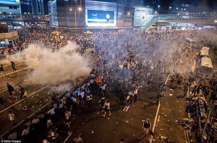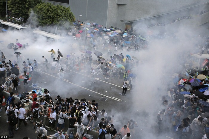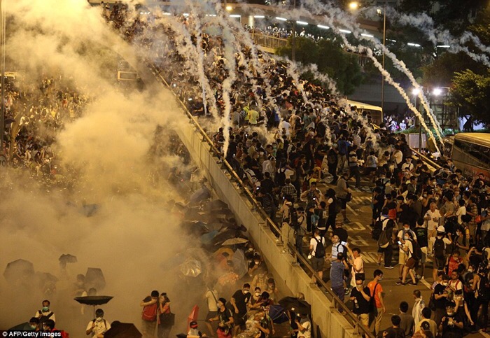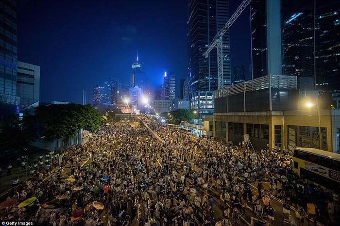 Hàng ngàn người biểu tình bao vây trụ sở chính quyền Hồng Kông để đòi dân chủ vào hôm 27.9 – Ảnh: Reuters