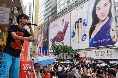 Chàng thanh niên gầy, đeo kính, nhìn hiền hòa này đã xây dựng một phong trào thanh niên ủng hộ dân chủ tại Hồng Kông trong hai năm qua. Lập lại ý chí của tuổi trẻ TC từng tràn ngập Thiên an Môn năm 1989.