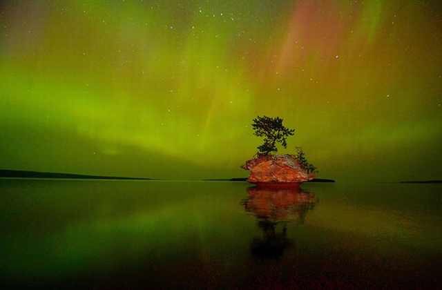 An amazing shot of Northern lights (Aurora Borealis), Apostle Islands National Lakeshore, Wisconsin