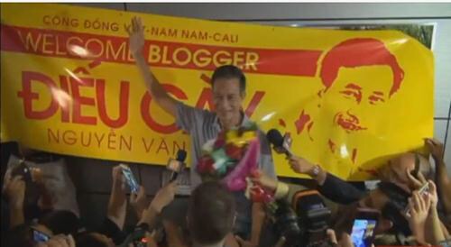 Điếu Cày: Trước hết, tôi xin nói rõ: Tôi không xin tha tù, và nhà cầm quyền Cộng Sản cũng không tha tôi. Họ đưa tôi ra khỏi trại giam và áp giải tới sân bay. Bộ Ngoại Giao Việt Nam tuyên bố, Việt Nam đã quyết định tạm đình chỉ chấp hành hình phạt tù.