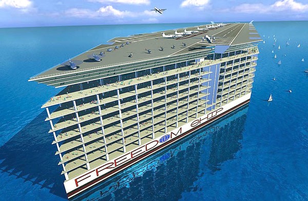Một sân bay dành cho máy bay thương mại loại nhỏ trên nóc Freedom Ship