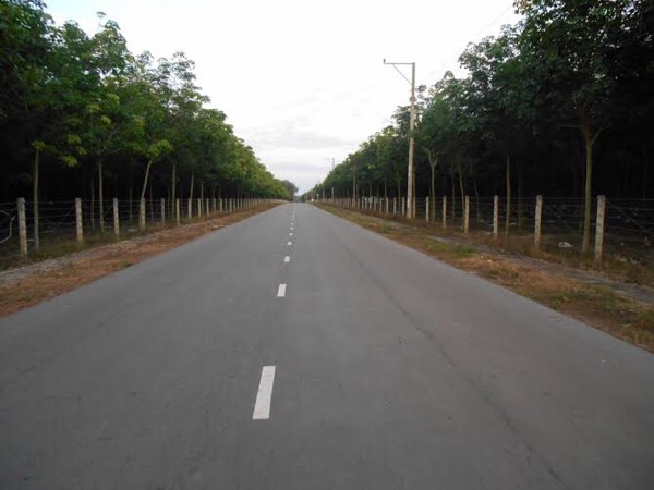 Lô đất cao su vài chục héc ta của ông Lê Thanh Cung được tráng nhựa dài khoảng 2 km băng ngang vườn.