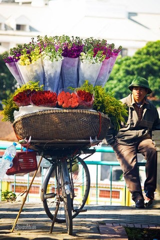 Người Hà Nội yêu hoa và mỗi mùa xuân, hạ, thu, đông Hà Nội lại có một loài hoa đặc trưng riêng. Khi mà đô thị dần lấn át những vùng đất chuyên trồng hoa cũ, sắc hoa bốn mùa chuyển từ ngoại thành vào từng ngõ phố qua những chiếc xe đạp cần mẫn. Dường như những người mang cái đẹp đến cho đời bao giờ cũng lặng lẽ như thế. Những mẹ, những chị chở hoa cứ âm thầm tiến sâu vào những con đường hun hút sương sớm, sương đêm. Giữa những ồn ào và bụi bặm của phố xá, những chiếc xe đạp rong hoa vẫn giữ nguyên vẹn cho mình vẻ bình yên, nên thơ, vừa bình dị vừa quý phái.