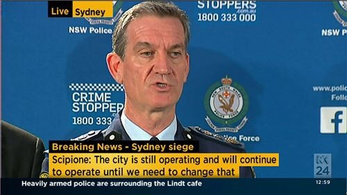 Ở hầu hết tất cả các công ty, nhân viên tập trung trước màn hình TV, nghe thông điệp của Thủ tướng khi ông họp báo khẩn cấp thông báo về vụ việc bắt cóc nghiêm trọng. Thủ tướng Tony Abott trấn an: “Tất cả người dân Australia nên yên tâm rằng các cơ quan an ninh và thực thi pháp luật của chúng ta được huấn luyện và trang bị tốt, đang đối phó với vụ việc theo cách thức chuyên nghiệp và đồng bộ”.