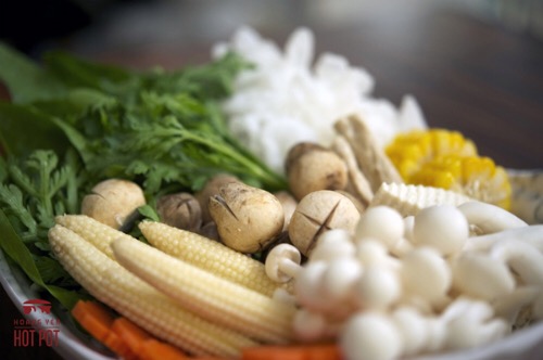 -Khoai môn rửa sạch, thái miếng vừa ăn. Ngô ngọt rửa sạch, cắt khúc. Dứa thái mỏng, cà chua bổ cau, nấm, rau các loại rửa sạch, để ráo nước, khi ăn nhúng cùng nước lẩu.