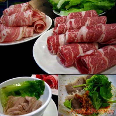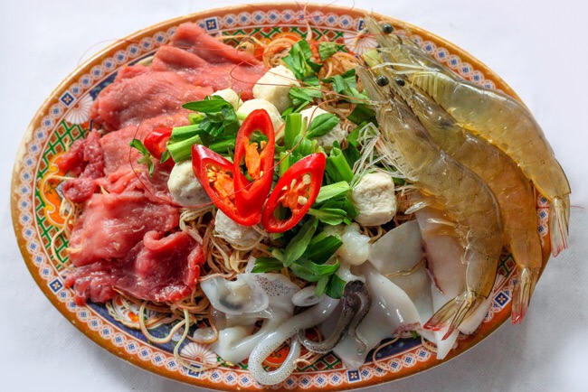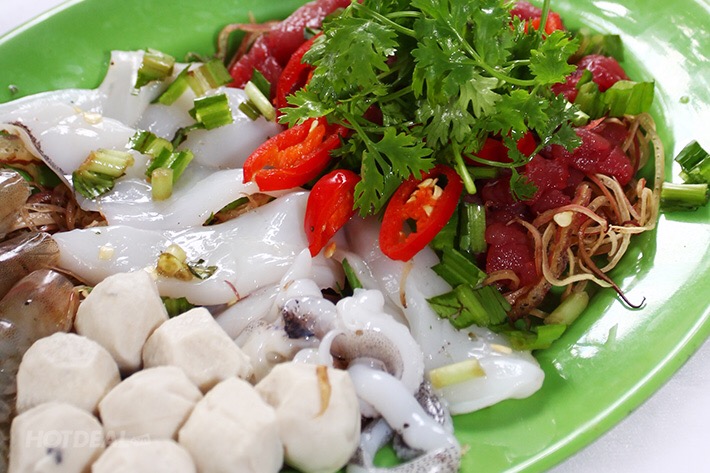 -Tôm, ngao, mực, thịt bò, đậu phụ.