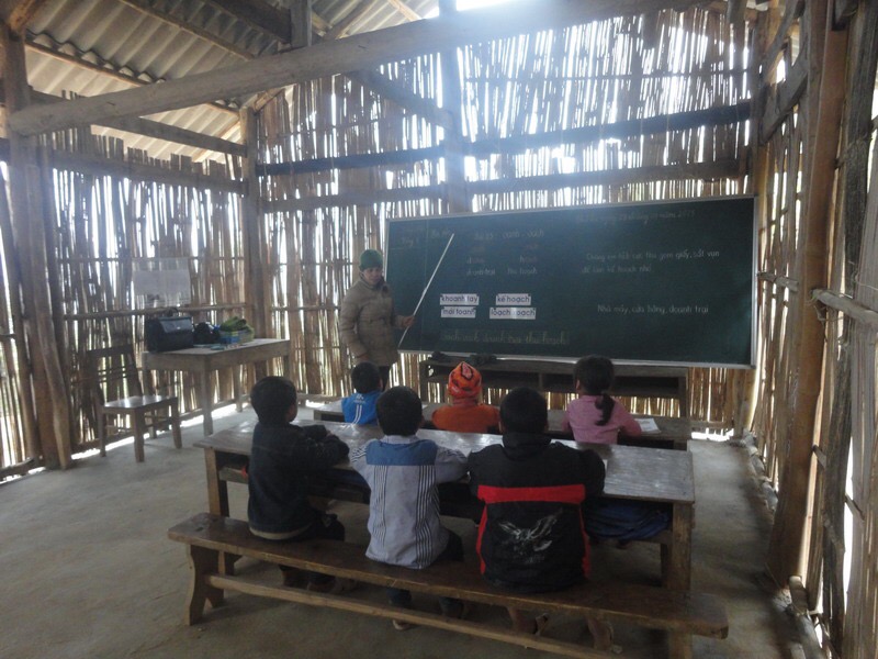 Khó khăn thiếu thốn nhưng nhiều em vẫn cuốc bộ 4,5 km để tới lớp học còn rách nát đan bằng tre nứa…