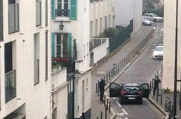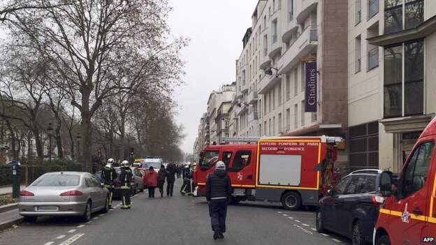 Lực lượng cứu hỏa và cảnh sát nay đang phong tỏa khu vực văn phòng Hebdo.