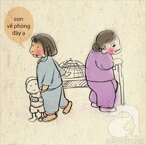 Hình ảnh này chúng ta lại có thể dễ dàng bắt gặp ở thời xưa, thời còn nghèo khi bố mẹ và con cùng nhau ngồi trên chiếc chõng tre mà cả nhà cùng nhau hát hò, vui vẻ. Hạnh phúc thực sự là điều rất gần.