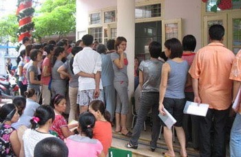 Xếp hàng xin cho con học tại Trường Mầm non, Tây Hồ, Hà Nội