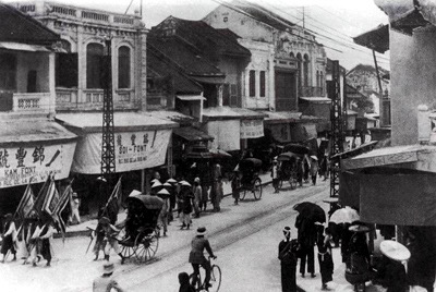 Hoặc thường hơn, những người buôn bán gốc Hoa, lập nghiệp ở mấy phố Hàng Buồm, Lãn Ông, Hàng Ngang, Sầm Công hay Tạ Hiện… Họ bán nghề thuốc, cao lâu, dịch vụ giải trí (rạp hát, sòng bài) như ở quê hương trước đó, họ lập nên những hội quán của riêng “bang” hay tỉnh xuất xứ, ví dụ hội quán Phúc Kiến ở phố Lãn Ông bán thuốc Đông dược, hội quán Quảng Đông ở phố Hàng Buồm và một số khác. Những nơi này được nhắc đến như là nơi trú chân của những nhân vật như Jean Dupuis ở hội quán Kouei- kuang 22 phố Hàng Buồm và kho vũ khí chuẩn bị cho cuộc đánh chiếm Hà Nội mang danh nghĩa thám hiểm sông Hồng. Nơi này cũng coi như nhà khách toàn quyền đầu tiên ở Hà Nội do Paul Bert mở ra nhằm tranh thủ sự ủng hộ của giới con buôn Hoa Kiều cho chính quyền thực dân khi chưa nắm chắc dân Hà Nội. Ngôi nhà đó cũng là nơi Tôn Trung Sơn từng ở khi đến Hà Nội. Hiện nay ngôi nhà này vẫn còn giữ được kiến trúc Hoa Kiều, nhưng dùng cho trường mẫu giáo Tuổi Thơ.