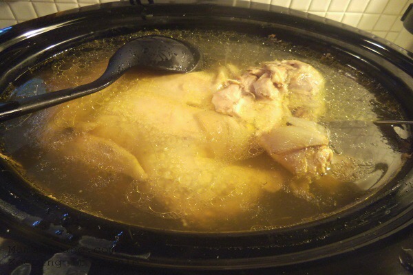 Đổ nước đổ ngập con gà và canh nhỏ lửa trong lúc luộc.