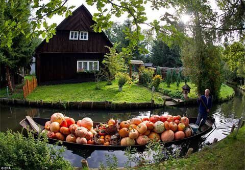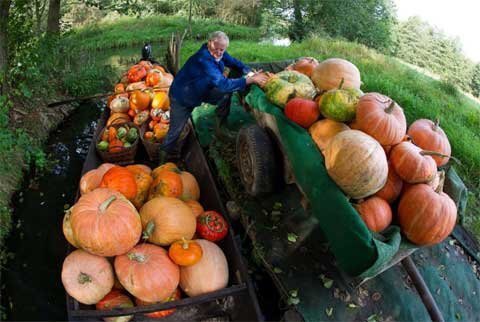 Hình ảnh người nông dân đưa bí đỏ từ những cánh đồng trong khu rừng cổ tích tới chợ bằng thuyền có thể gọi là bức tranh tuyệt hảo về mùa thu.