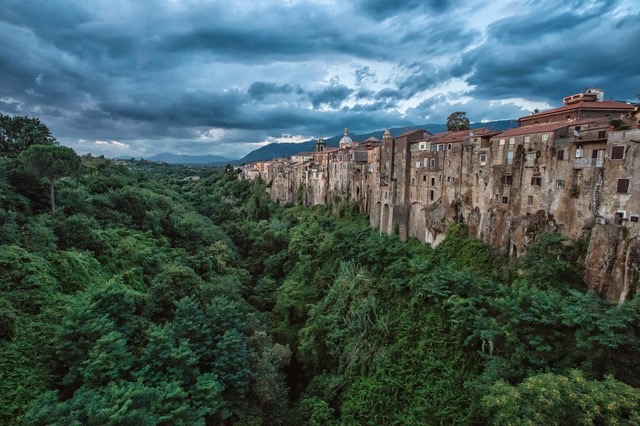 3. Nét kiến trúc tuyệt vời cùng những làn mây trôi lững lờ như cho thấy sự kết hợp hoàn hảo của thiên nhiên và con người. (Thị trấn Sant’Agata de’ Goti, Campania, Italy)