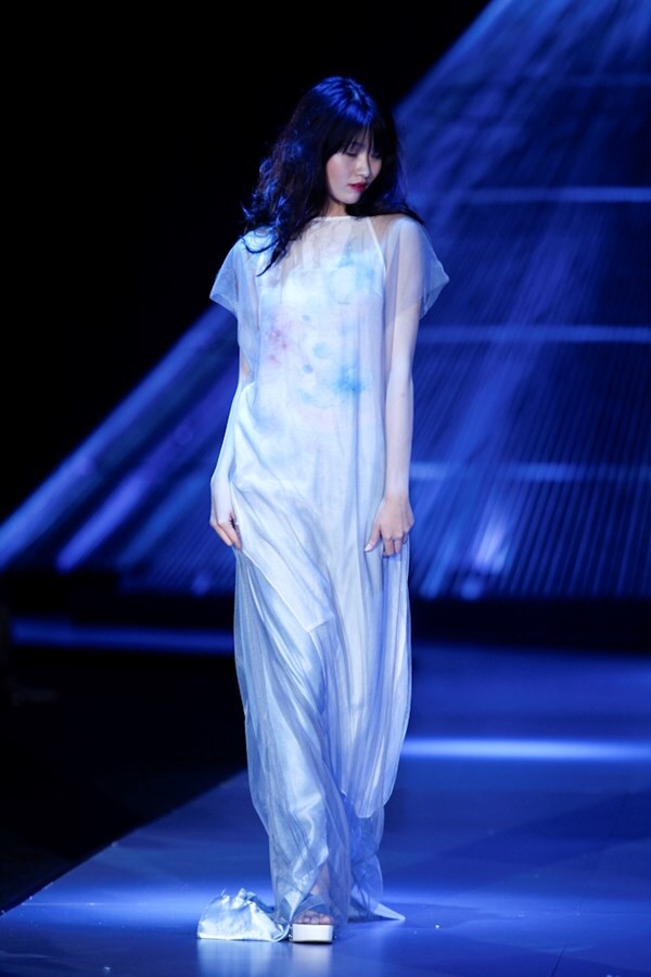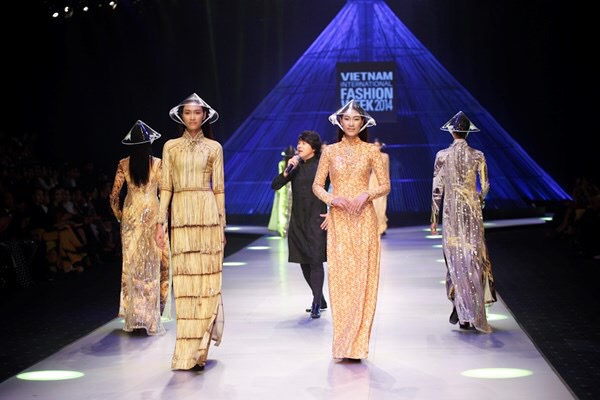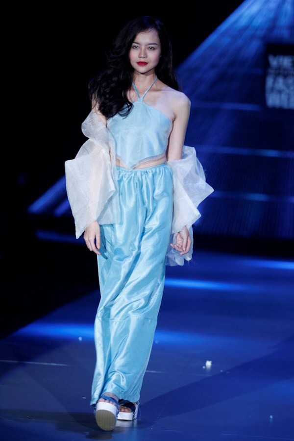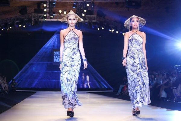 Tại VIFW 2015, trang phục mở màn và kết màn của NTK Hoàng Minh Hà do người mẫu Chà Mi và Hoàng Thùy được kết từ sợi kinh nghiệm như chiếc lồng son và tuyệt hơn nữa khi được kết hợp với chiếc nón lá trắng nổi bật hay cùng chất liệu kim loại đồng điệu cộng hưởng.