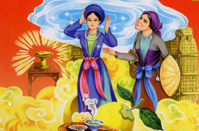 – Chị Tấm ơi, chị Tấm, chị dầm sương giãi nắng, đi vắng khá lâu, sao giờ chị trắng?