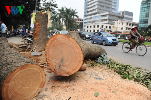 “Hàng cây xanh trên phố này, phải mất bao nhiêu năm mới tỏa bóng như vậy. Giờ bỗng dưng như có một chiến dịch diệt cây, công nhân ào ào đốn hạ, đường phố trơ trụi như bị lột trần”, ông Minh nuối tiếc. Thẫn thờ nhìn hàng cây hoa sữa trước nhà nay không còn, chị Trần Thu Hà (30 tuổi), ở gần số 62 phố Nguyễn Chí Thanh, cho hay khi chuyển về đây sống cây cũng đã khá cao, thân thẳng, tán rộng mà không hiểu vì sao lại bị chặt. “Anh nhìn xem, cây nào cây nấy thẳng tăm tắp, không cản trở gì giao thông, bóng mát rợp đường mà chặt thì quá lãng phí. Đành rằng cây bị sâu bệnh phải chặt nhưng khi cưa cành, thân cây nào có thấy sâu đục, toàn một màu gỗ tươi của cây khỏe mạnh”, chị Hà nói.