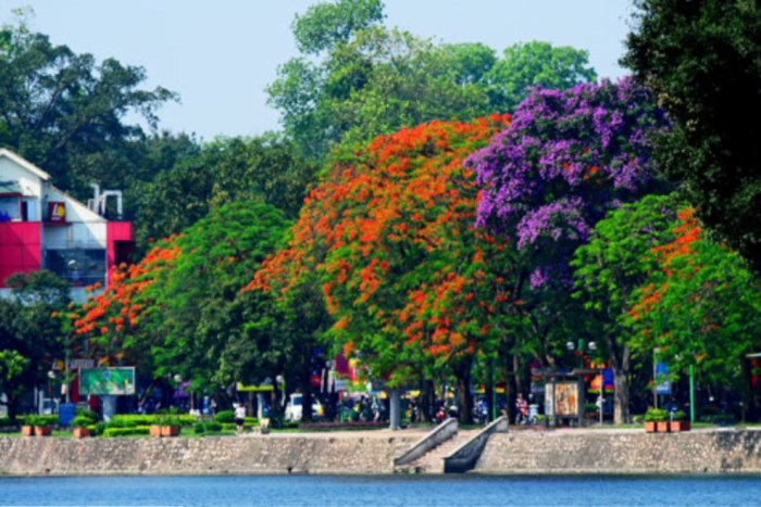 Hồ Tây với chùa Trấn Quốc, du thuyền, Highland coffee trên du thuyền, con đường tình yêu – Thanh Niên với hai hàng điệp vàng thơ mộng là điểm đến không thể bỏ qua khi du khách đến với Hà Nội vào một chiều thu trong mát. Nếu may mắn, du khách có thể tận hượng trọn vẹn cảnh hoàng hôn trên hồ.