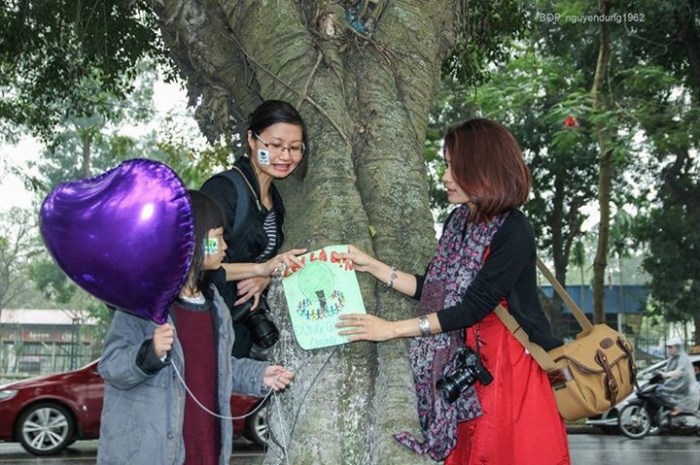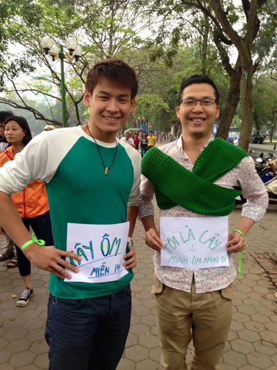 Phong trào này có tên: “Tree Hugs Hà Nội”, với câu nói ngộ nghĩnh: “Anh sẽ ôm em để không ai cưa em được”