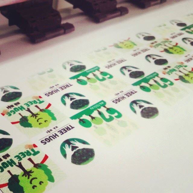 Hình dán với dòng chữ “gìn giữ và bảo vệ cây xanh” được các bạn trẻ dán lên mặt.