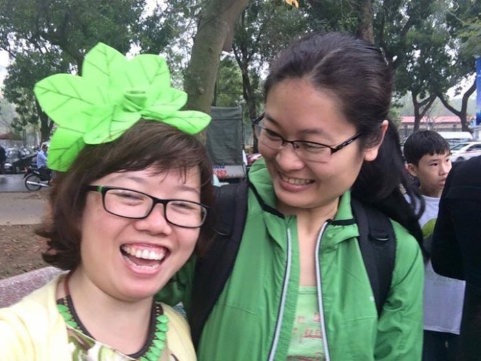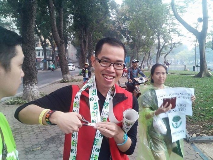 Họ buộc những dải lụa xanh vào tay để hưởng ứng cùng chung một lòng bảo vệ cây xanh.