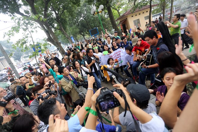 Rất đông người đã chụp ảnh và đăng ngay lên facebook buổi tuần hành này.