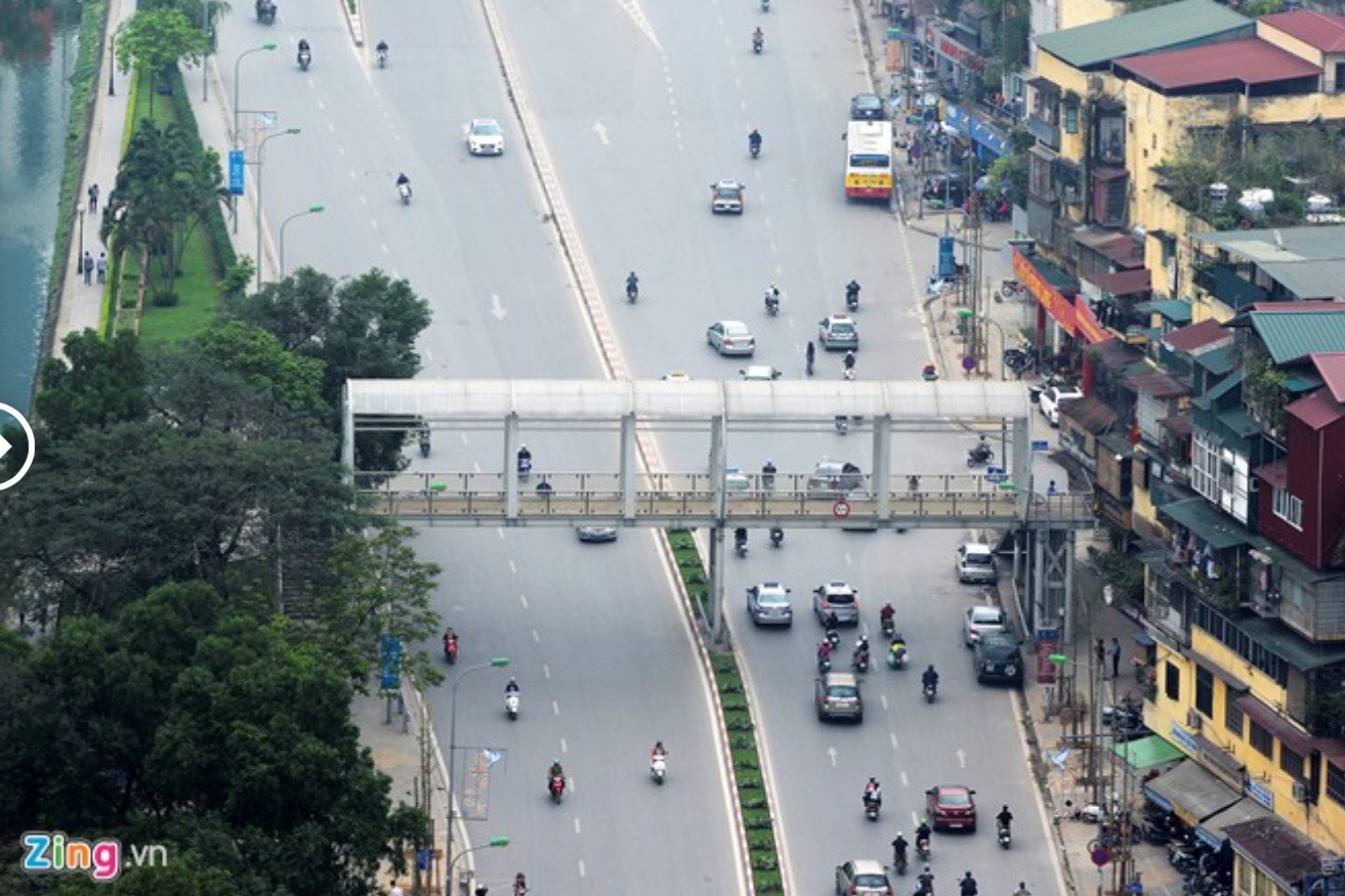 Nhìn từ trên cao, đường Nguyễn Chí Thanh, con đường từng được bình chọn đẹp nhất Việt Nam, nay trơ trụi, không còn màu xanh đầy sức sống như trước.