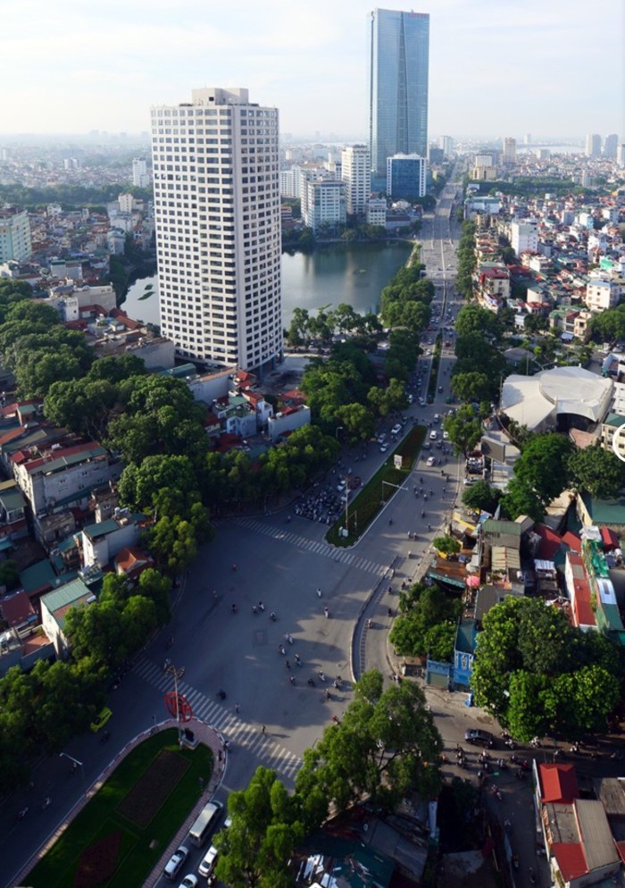 Nhìn từ trên cao, đường Nguyễn Chí Thanh, con đường từng được bình chọn đẹp nhất Việt Nam, nay trơ trụi, không còn màu xanh đầy sức sống như trước.