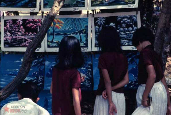 Tháng 12/1968. Các cô gái ngắm những bức tranh được bày bán trong Thảo Cầm Viên.