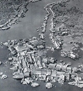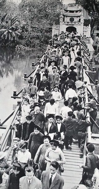 Bức ảnh này cho thấy có thời điểm hồ Hoàn Kiếm (Hà Nội) có tới hai chiếc cầu dẫn vào đền Ngọc Sơn. Cây cầu bên trái là cầu Thê Húc, cây cầu bên phải nhỏ hơn, được dựng sơ sài bằng các thân tre.