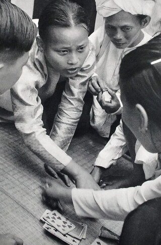 Chiếu bạc ven đường. Các bộ bài Tây đã du nhập vào Việt Nam từ nước Pháp.