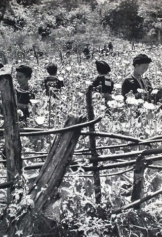 Phụ nữ H’Mông trên một cánh đồng thuốc phiện. Nghề trồng và chế biến thuốc phiện đem lại cho họ các khoản tiền mặt lớn cũng như nhiều thứ hàng hoá của miền xuôi.