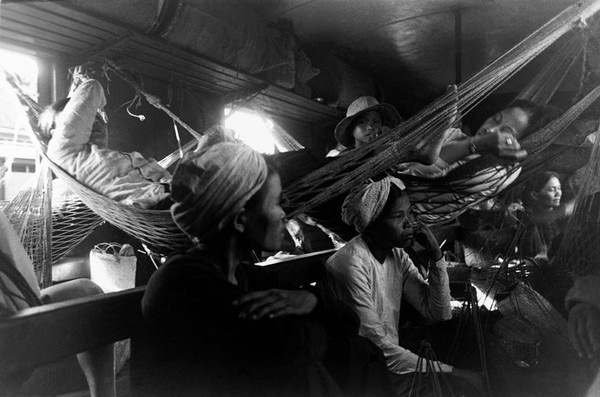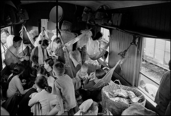Cảnh mắc võng trên chuyến tàu Sài Gòn – Nha Trang năm 1952. Toa hạng 4.