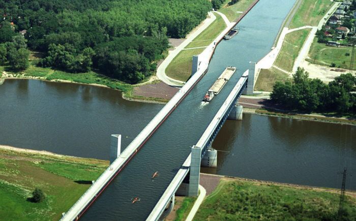 Nhìn từ trên xuống, cầu Magdeburg giống như một dòng sông nằm trên… một dòng sông khác vậy. Nhờ cây cầu dẫn nước này, tàu, thuyền vượt qua sông Elbe nhanh chóng và thuận tiện hơn rất nhiều.