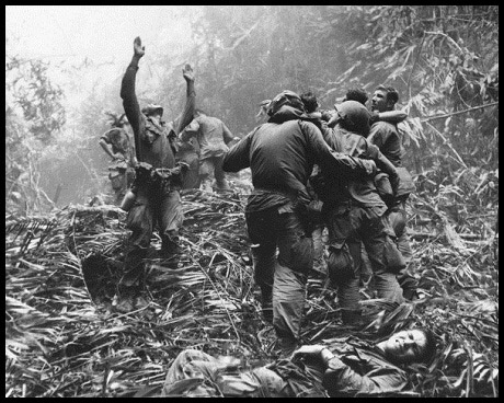 Tháng 9/1966. Lính Thủy Quân Lục Chiến Mỹ chui lên từ các hầm trú ẩn. Đây là ngày thứ 3 họ chiến đấu với du kích Việt Nam trong một khu rừng ở gần Huế. Chiếc máy bay bên trái đã bị du kích bắn rơi khi bay vào tiếp tế
