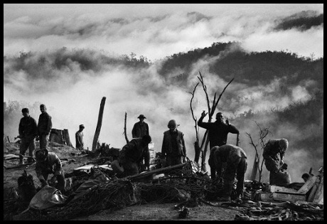 Tháng 11/1968. Sương mù cuộn lên trên một đỉnh núi trong khi Lính Mỹ đang dỡ hàng tiếp tế mà trực thăng vừa mang tới.