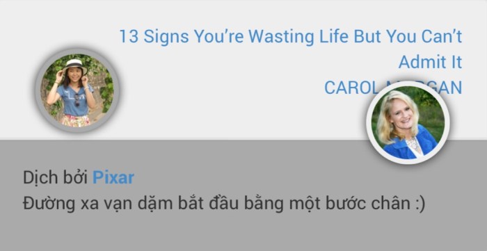 Nếu bạn thấy mình có bất cứ điều gì trong số 13 dấu hiệu trên, đừng thất vọng. Bạn cũng có thể thay đổi. Nhưng điều đầu tiên bạn cần làm là tránh xa ý nghĩ ‘mình không thể làm được’. Trong nhiều tình huống, trở ngại lớn nhất của bạn lại là chính bạn. Do đó hãy bắt đầu ngay từ bây giờ – Thay thái độ, đổi cuộc đời!