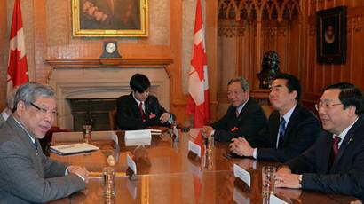 Thượng nghị sỹ Ngô Thanh Hải (trái) trong lần tiếp đoàn quan chức Việt Nam tới Quốc hội Canada.