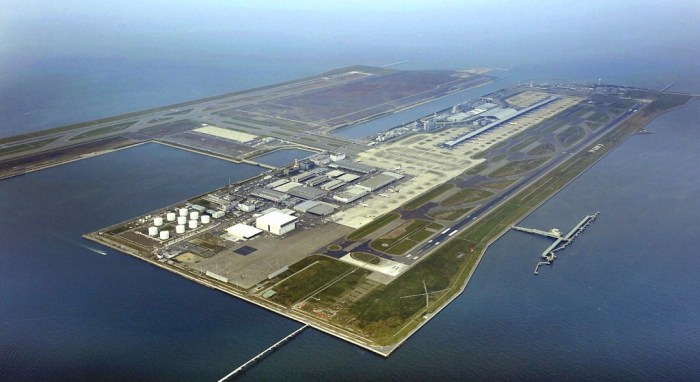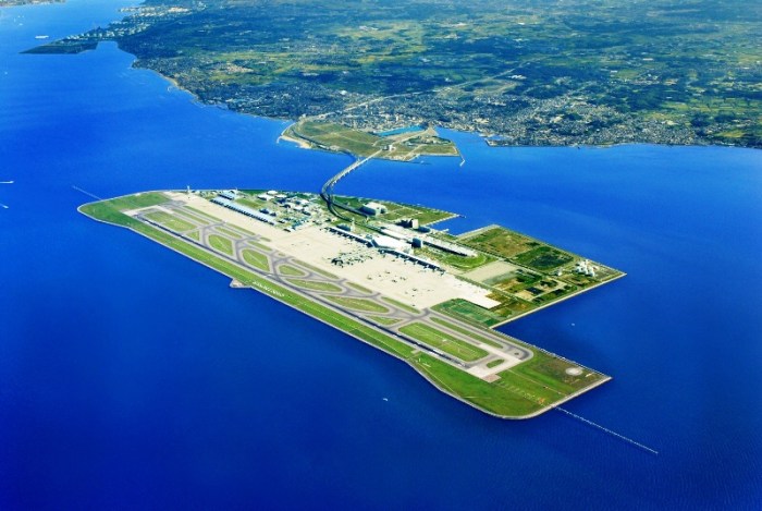 Lấp biển chỉ có trong truyền thuyết nhưng ngày nay người Nhật Bản lấp biển tạo đảo là câu chuyện có thật. Sân bay Quốc tế Kansai chính là xây dựng trên hòn đảo nhân tạo với tổng diện tích 511 hécta. Nó nằm trên Vịnh Osaka cách đất liền 5km hình chữ nhật, nhìn từ trên xuống giống như một hàng không mẫu hạm.