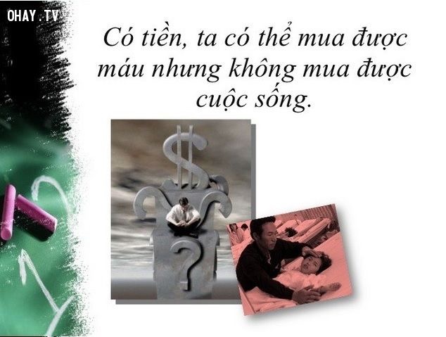 Kết. Tiền bạc là thứ rất quan trọng nhưng đừng để tiền bạc chi phối qua nhiều cuộc sống của chúng ta. Trên đời này, có những thứ quan trọng hơn tiền rất nhiều mà tiền dù bao nhiêu cũng chẳng thể mua nổi. Hãy biết quý trọng những gì chúng ta đang có.