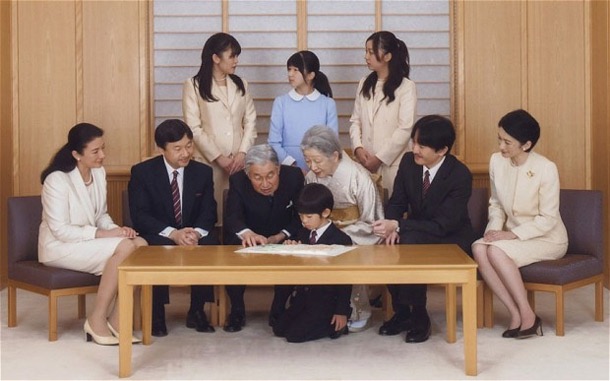 Bức ảnh hoàng gia Nhật: Hoàng đế Akihito 80 tuổi và hoàng hậu Michiko 79 tuổi được vây quanh bởi các con trai, con dâu và cháu của họ.
