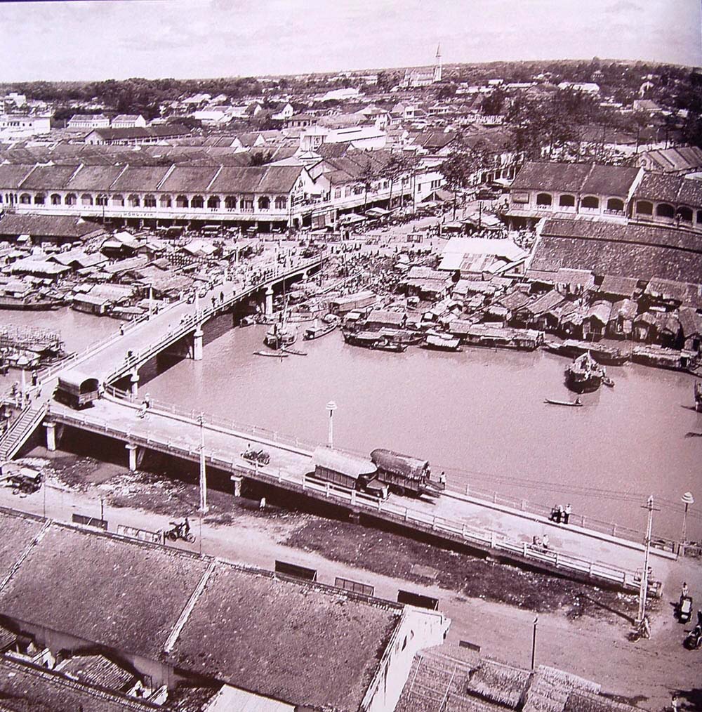 Cầu Khánh Hội và cầu Mống trên Kênh Tàu Hủ năm 1955.