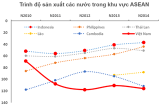 Xét về mức độ cạnh tranh của doanh nghiệp, hiện trình độ sản xuất của Việt Nam được WEF xếp sau cả Lào và Campuchia, chỉ cao hơn Myanmar.
