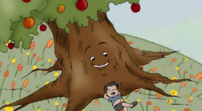 – Ta thật sự chẳng giúp gì cho cậu được nữa. Cái duy nhất còn lại là bộ rễ đang chết dần mòn của ta – cây táo nói trong nước mắt.