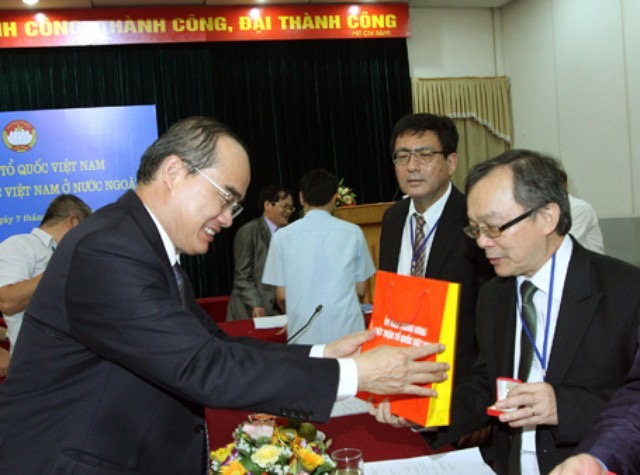 Giáo sư Nguyễn Thiện Nhân, Ủy viên Bộ Chính trị, Chủ tịch Ủy ban Trung ương Mặt trận Tổ quốc Việt Nam dự và chủ trì buổi gặp mặt. Cùng dự có Thứ trưởng Bộ Ngoại giao, Chủ nhiệm Ủy ban Nhà nước về người Việt Nam ở nước ngoài Vũ Hồng Nam; Trưởng Ban Kinh tế Trung ương Vương Đình Huệ và các trí thức, chuyên gia, nhà khoa học người Việt Nam ở nước ngoài.