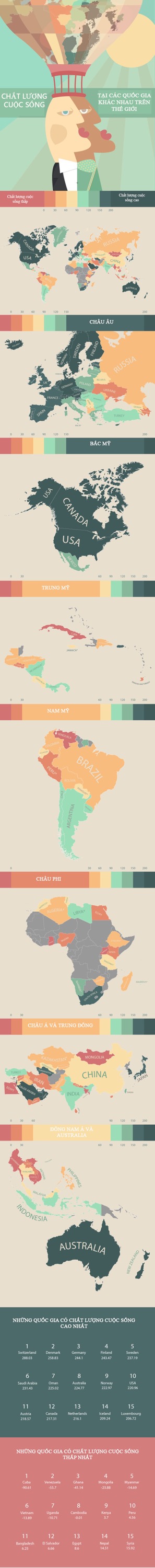 Việt Nam nằm trong top 10 quốc gia có chất lượng cuộc sống thấp bậc nhất trên thế giới với số điểm -13,89, xếp sau cả Lào và Campuchia.