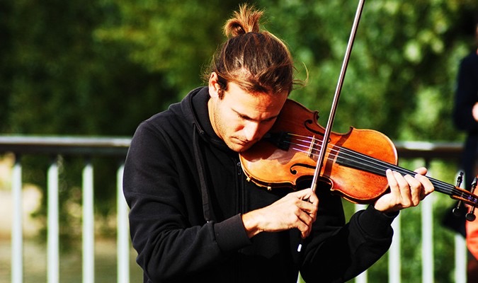 Chàng thanh niên không một đồng xu trong người, đi đến con phố phồn hoa cách học viện đó không xa, đứng dưới một thân cây, và tiếng vĩ cầm vang lên theo nhịp kéo của anh.